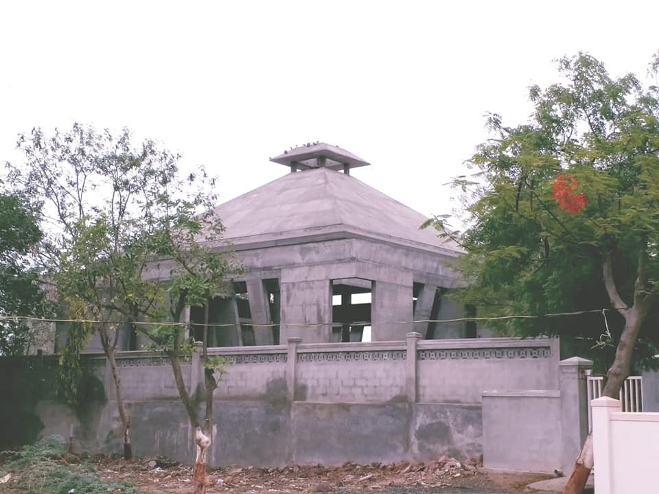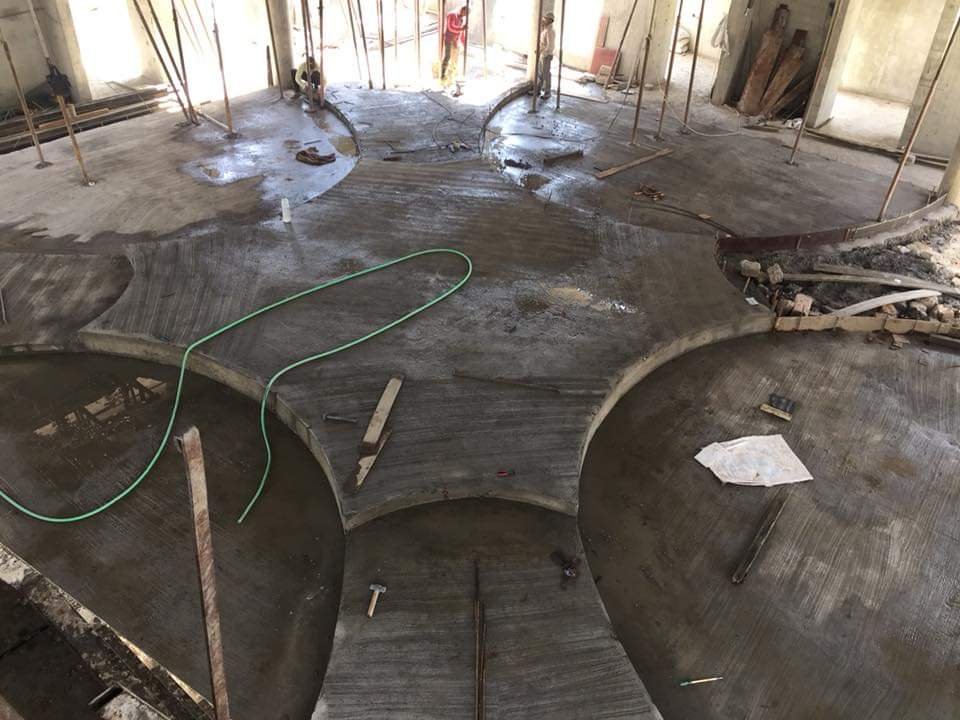 This project features a fully RCC (Reinforced Cement Concrete) structural design, constructed entirely without any masonry work. The structure is developed with a unique temple-inspired form, resembling a pyramid footing that rises seamlessly from the ground up to a height of 40 feet. The entire construction, from foundation to top, is executed in RCC, ensuring superior strength, durability, and long-term stability while achieving a distinctive architectural appearance.